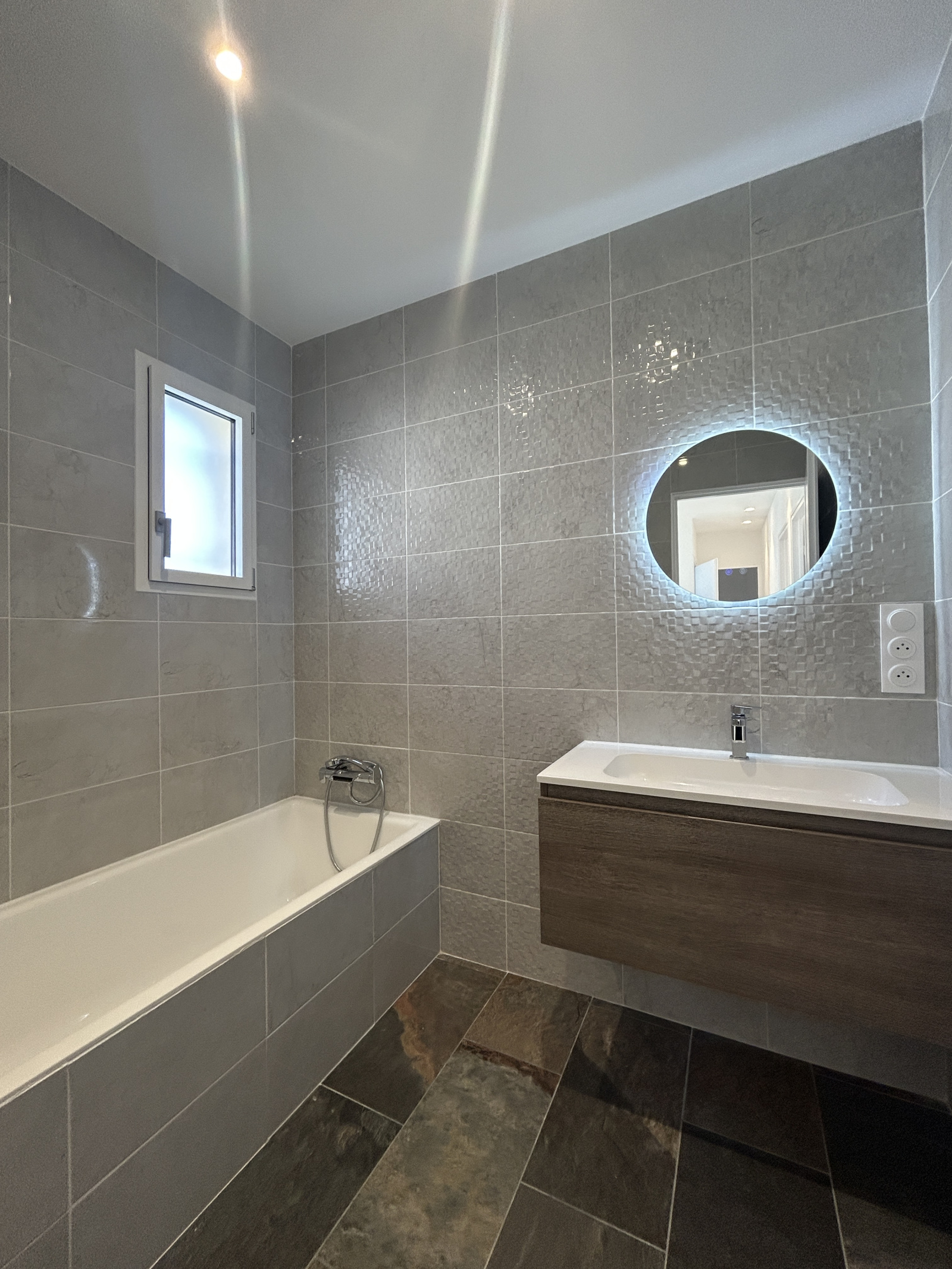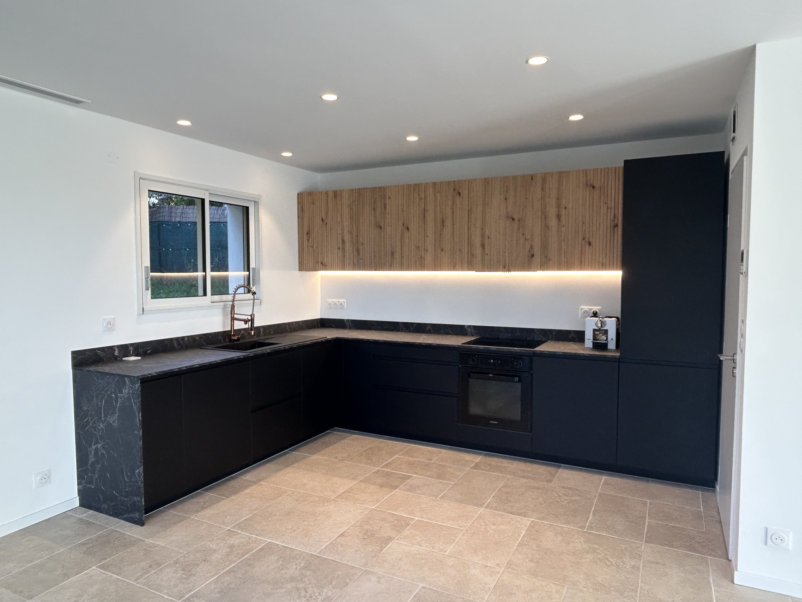 Très belle maison indépendante à une minute à pieds du village, construite en 2025, 4 pièces, d'une superficie de 105m2 sur un terrain de 755m2. Le bien est composé au rez de chaussée d'un beau séjour avec cuisine ouverte équipée de 45m2, cellier, WC indépendants. Le premier étage est composé de 2 chambre, une salle de bain, WC indépendants et une chambre de maître de 18m2 avec dressing et salle de douche. La maison est exposée plein sud et offre de belles prestations neuves (climatisation gainable, domotique...) . Produit rare !